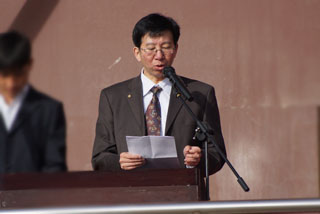 交通學院黨委書記孫智憑致開幕詞。首先,他代表學院歡迎各位領(lǐng)導嘉賓的光臨,向大會籌備人員和全體參訓參賽的運動員、裁判員、教練員表示崇高敬意和衷心感謝。致詞中,孫智憑書記通過對“中國夢”的詮釋,擴展到“千千萬萬中華兒女夢想”,從建設(shè)內(nèi)蒙古大學工科基地事業(yè)發(fā)展的高度和高素質(zhì)人才培養(yǎng)的維度,對此次運動會和運動員提出了殷切的希望:他希望每個人把青春的美麗夢想和國家的興旺大業(yè)結(jié)合起來,從身邊事做起,從我做起,從小事做起,為實現(xiàn)中國夢添加力量;他希望青年學會服務(wù)身邊同學,服務(wù)學校發(fā)展,服務(wù)社會進步,在實踐中踐行美麗夢想。同時,他講到,要使自己成為一個高素質(zhì)和有作為并能實現(xiàn)美好夢想的人,把自己鍛煉成為有崇高思想、扎實專業(yè)基礎(chǔ)知識、有較強實踐動手能力、堅強意志、健全心智、有團結(jié)協(xié)作精神的人,基礎(chǔ)是要有健康的身體和強健的體魄,要養(yǎng)成鍛煉身體的良好修為和習慣。他希望,同學們要抓住在校期間的每一個機會,不斷提高和磨練自身各方面的素質(zhì),發(fā)揚交通學院優(yōu)良傳統(tǒng),以校友、學長、前輩為榜樣,學習超越,秉承“更高、更快、更強”的體育精神,賽出成績、賽出水平、賽出風格,賽出交通學院的風采。最后,他祝愿本次運動會圓滿成功!