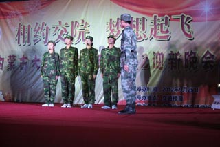 姿態(tài)曼妙的頂碗舞拉開(kāi)了晚會(huì)序幕,場(chǎng)面盛大的晚會(huì)以歌曲《我的未來(lái)不是夢(mèng)》《站起來(lái)》,詩(shī)朗誦《獻(xiàn)給2012的學(xué)子》,舞蹈《kill the beats》,小品《軍訓(xùn)小趣》表現(xiàn)了“等待,夢(mèng)想的花開(kāi)”的主題;以歌曲《想你的夜》,樂(lè)器演奏《軍港之夜》,舞蹈《碧波孔雀》,歌曲《護(hù)花使者》,舞蹈《kiss fire》表現(xiàn)了“舞動(dòng),美麗的青春”的主題;以歌曲《我的父親是牧馬人》,小品《推銷》,街舞《舞動(dòng)青春》,相聲《姑娘小伙別這樣》表現(xiàn)了“譜寫,騰飛的贊歌”的主題,晚會(huì)在軍樂(lè)團(tuán)的演奏、學(xué)生聯(lián)合會(huì)合唱的《走向復(fù)興》《中國(guó),中國(guó),鮮紅的太陽(yáng)永不落》圓滿落下了帷幕。眾多的優(yōu)秀節(jié)目,讓大家感受到了青春澎湃的力量,給2012級(jí)新生留下了美好的回憶。同學(xué)們的表演精彩紛呈,觀眾掌聲熱烈,兩個(gè)小時(shí)的晚會(huì)始終洋溢著熱烈祥和的氛圍。