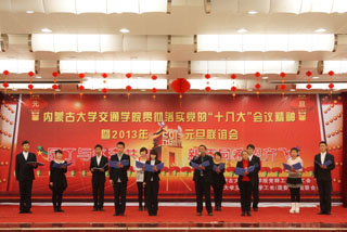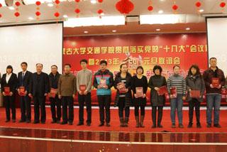 12月27日下午,學(xué)院在交通樓多功能廳舉辦2013年新年聯(lián)誼會暨工會表彰大會。我院黨委書記孫智憑,院長柴金義,常務(wù)副院長董平,副院長孫恒,副院長武鈞,黨委委員、科研處處長李宏,黨委委員、教務(wù)處處長趙志蒙出席表彰大會并為獲獎單位和個人頒獎。黨委副書記、紀(jì)委書記白托婭主持會議。全院200余名教職工參加了聯(lián)誼會。