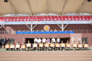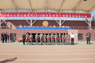 2013年9月5日,為期12天的內(nèi)蒙古大學(xué)交通學(xué)院2013級(jí)新生軍訓(xùn)圓滿結(jié)束并在南校區(qū)操場(chǎng)舉辦新生軍訓(xùn)匯操暨表彰大會(huì)。中國(guó)人民解放軍駐內(nèi)蒙古大學(xué)后備軍官選培辦主任胡成,內(nèi)蒙古大學(xué)學(xué)工處副處長(zhǎng)(團(tuán)委副書記)武裝部副部長(zhǎng)海光,學(xué)院常務(wù)副院長(zhǎng)董平,黨委副書記、紀(jì)委書記、軍訓(xùn)工作領(lǐng)導(dǎo)小組組長(zhǎng)白托婭,副院長(zhǎng)孫恒,副院長(zhǎng)武鈞和各系黨總支書記出席表彰大會(huì)并在主席臺(tái)就坐。學(xué)工處副處長(zhǎng)、團(tuán)委副書記高飛主持大會(huì)。