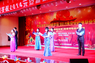 白托婭副書記致辭,她說,回首即將過去的2013年,學(xué)院各項建設(shè)事業(yè)取得了長足的發(fā)展,特別令人鼓舞和振奮的是,我們集全院之力勝利召開了學(xué)院第一次黨員大會,確立了今后一個時期學(xué)院的發(fā)展目標(biāo)和發(fā)展思路。無論是過去的成績還是未來的目標(biāo),都離不開全體教職員工和廣大同學(xué)們的努力,學(xué)院所有的成績都凝聚著大家的智慧和汗水。喜迎新年之際,她代表學(xué)院領(lǐng)導(dǎo)班子,向全院師生員工致以衷心的感謝和誠摯的問候,祝愿大家在新的一年里,學(xué)習(xí)進(jìn)步、工作順利、闔家幸福、萬事如意。同時,她還為即將畢業(yè)的2014屆學(xué)子們送上深情的祝福,希望同學(xué)們在未來的人生旅途中,秉承著交通學(xué)院50多年形成的優(yōu)良傳統(tǒng),志存四方,腳踏實地,自信拼搏,勤奮進(jìn)取,開創(chuàng)出美好燦爛的明天。