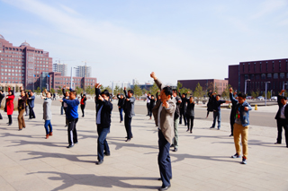 為增強(qiáng)我院廣大教職工的身體素質(zhì),培養(yǎng)健康的運(yùn)動習(xí)慣,保持充沛的工作精力,形成良好的精神狀態(tài), 3月31日上午,學(xué)院組織教職工50余人在交通樓樓前廣場教做第十套廣播體操。