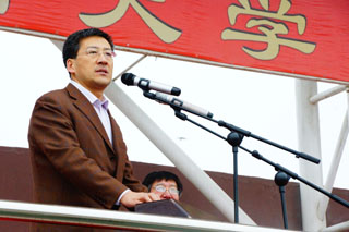 學(xué)院黨委書記孫智憑致運動會開幕詞。首先,他代表學(xué)院對第45屆田徑運動會的開幕表示祝賀,對到場的所有領(lǐng)導(dǎo)嘉賓表示熱烈的歡迎,對為本次運動會籌備工作付出辛勤勞動的老師、同學(xué)們表示誠摯的謝意。 他指出當(dāng)今社會是競爭激烈的社會,只有綜合素質(zhì)強的人,才能在競爭中立于不敗之地。我們要加大力度構(gòu)建和完善學(xué)生綜合素質(zhì)培養(yǎng)體系,把我們的學(xué)生培養(yǎng)成為有思想、有知識、有能力,意志堅強、身心健康的高素質(zhì)人才。開好一年一度的田徑運動會,就是構(gòu)建這樣的培養(yǎng)體系,提升學(xué)生綜合素質(zhì)特別是體能素質(zhì)的具體實踐和有益活動。作為當(dāng)代大學(xué)生應(yīng)該對自己的未來有清晰規(guī)劃,要注重綜合素質(zhì)的培養(yǎng)和提高,只要目標(biāo)明確,努力向自己的夢想邁進,腳踏實地,就會得到進步,成為一個高素質(zhì)、有用的、可持續(xù)發(fā)展的人才,并創(chuàng)造屬于自己的奇跡。他強調(diào),交通學(xué)院是一個有著光榮歷史和優(yōu)良傳統(tǒng)的院校,多年來培養(yǎng)了大量優(yōu)秀人才,為國家交通事業(yè)的發(fā)展做出了重要貢獻,希望同學(xué)們以他們?yōu)榘駱樱プ≡谛F陂g的每一個機會,不斷提升自己的能力,使自己成為新時代的優(yōu)秀學(xué)子和合格人才;希望在本屆運動會上秉承“更高、更快、更強”的體育精神,賽出成績、賽出風(fēng)格、賽出水平,賽出交通學(xué)院的風(fēng)采。最后,他祝愿本次運動會圓滿成功!