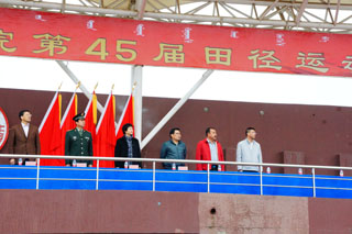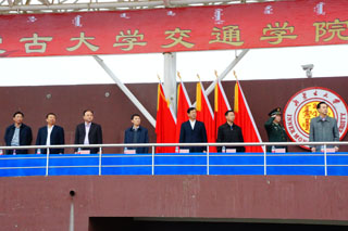 內(nèi)蒙古大學(xué)副校長鐵勇,內(nèi)蒙古大學(xué)黨委委員、交通學(xué)院黨委書記孫智憑,內(nèi)蒙古大學(xué)體育教學(xué)部主任于志海、黨政辦公室副主任方麗英、團委副書記海光、保衛(wèi)處副處長金山,中國人民解放軍陸軍預(yù)備役步兵第三十師參謀長謝志勇、通訊科科長孫英俊,交通學(xué)院常務(wù)副院長董平,副院長孫恒,副院長武鈞,各系黨總支書記出席開幕式并在主席臺就坐。我院師生2300余人參加了開幕式。開幕式由黨政辦公室主任胡利春主持。