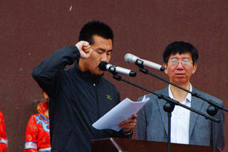 隨后由裁判員代表和運動員代表宣誓,開幕式議程結(jié)束,競賽開始。