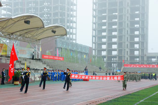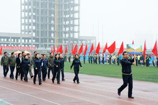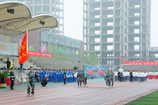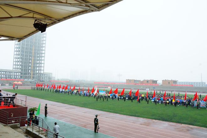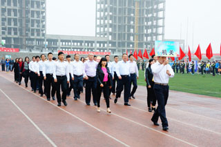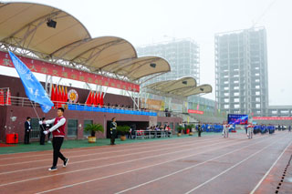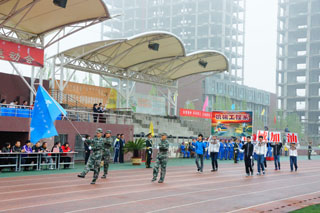 一場春夜喜雨之后,伴隨著清新的空氣,在雄壯高昂的運動員進行曲中,各系學(xué)生和教工方隊,機關(guān)、教輔單位職工方隊,步伐矯健,口號響亮,依次向主席臺走來,接受檢閱。隆重的入場式后,大會舉行了莊嚴(yán)的升國旗儀式,在嘹亮的國歌聲中,五星紅旗冉冉升起。