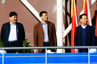 與會(huì)領(lǐng)導(dǎo)為獲得學(xué)生男子團(tuán)體前六名的單位頒獎(jiǎng) |