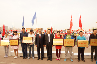 與會(huì)領(lǐng)導(dǎo)為獲得教工團(tuán)體前三名的單位頒獎(jiǎng) |