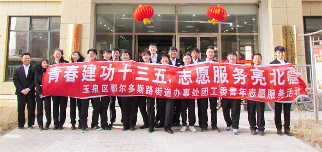 今年的3月5日,是我國第五十三個(gè)“雷鋒日”。社團(tuán)聯(lián)合會(huì)的20名委員們代表內(nèi)蒙古大學(xué)交通學(xué)院自愿、積極地參與了玉泉區(qū)鄂爾多斯路街道辦事處團(tuán)工委舉辦的“青春建功十三五,志愿服務(wù)亮北疆”青年志愿者服務(wù)活動(dòng)。社聯(lián)委員們走進(jìn)了社區(qū),看望孤寡老人,清潔衛(wèi)生,協(xié)助環(huán)衛(wèi)工人清理道路垃圾,為小區(qū)居民送去了溫暖。